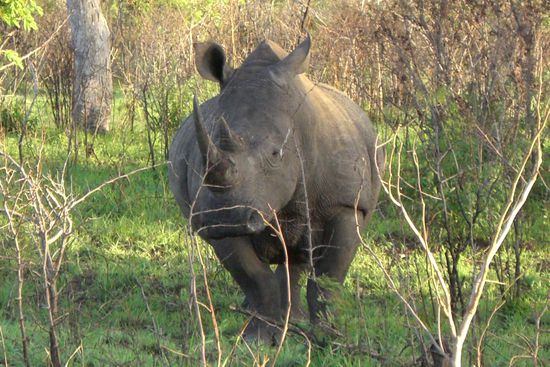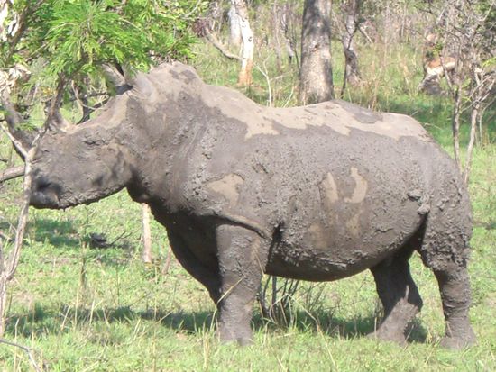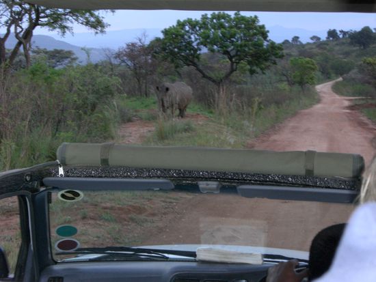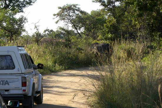 Wir haben aber Glueck und sehen bereits nach 5 Minute im Krueger die ersten Rhinos.