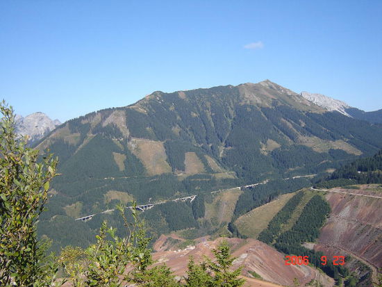 2006 Erzberg - früher förderte ein Knappe 160 - 200 kg Erz. Heute errechnet die Statistik pro Mann und Tag 10 Tonnen, allerdings eine Leistung, welche Computersteuerung, hydraulisch betriebene Grossbagger und Grosslochbohrmaschinen ermöglichen.
