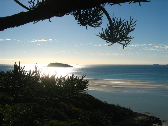 Am Morgen staerkten wie uns mit Muesli & CO. zum Fruehstueck und wurden danach mit einem Gummiboot zur Whitsunday Island "chauffiert". Von einem Lookout hatte man eine unglaublich schoene Aussicht auf den beruehmten Whitehaeven Beach - tuerkisfarbenes Wasser und der "angeblich" weisseste, feinste Sand der Welt boten Postkartenmotive