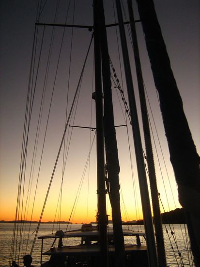 Wie checkten noch am selben Tag auf der Habibi ein - dieses Segelboot sollte fuer die naechsten 3 Tage unser zu Hause sein, zusammen mit 23 anderen Leuten aus aller Welt : Canada, England, Frankreich, Israel, Indien, Brasilien, Irland, Schweden und Deutschland. Die Crew bestand aus Johnny unserem Skipper, Scotty der Koch an Bord und Dara das "Maedchen fuer Alles".