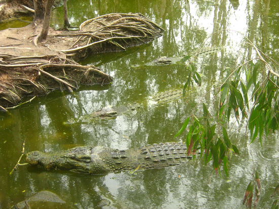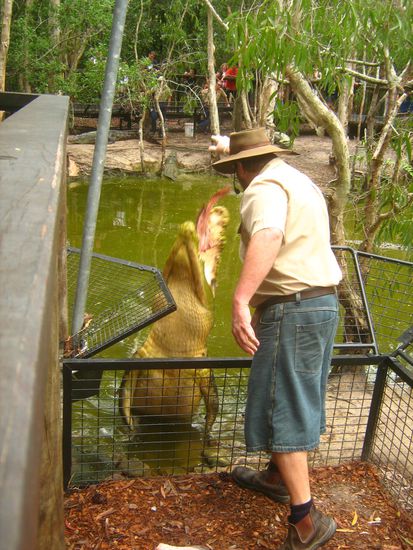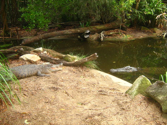 Am Mittwoch den 20.06. stellten wir uns einer weiteren grossen Herausforderung in Queensland. Nach dem Great Barrier Reef, hatten wir eine Verabredung mit Schnappi Hartleys Crocodile Farm war perfekt um einiges ueber die imposanten Tiere zu lernen. Hartleys umfasst ein grosses Gebiet Natur und ermoeglicht sowohl Salzwasserkrokodilen (Salties), als auch Suesswasser- bzw. Fresh-water-Krokodilen (Freshies) in ihrer natuerlichen Umgebung zu leben. Wir haben an einer Flusstour teilgenommen, bei der Fuetterung zugesehen und jede Menge Pfade zurueckgelegt um die Tiere zu beobachten. Ausserdem kann man in Hartleys Cassowaries, Schlangen, Leguane, Spinnen....und vieles mehr sehen - aus sicherer Distanz und mit jeder Menge Infos