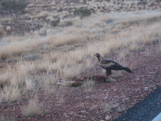 Nachdem Jensi ein wenig selbst herumgedoktert hatte und wir einsehen mussten, dass da nix zu machen war, warteten wir auf vorbeikommende Autos. Die sind in der Gegend natuerlich selten und noch seltener mit Abschleppseil aber alle sehr hilfsbereit. Abschleppen musste sein und zwei nette Queenslander auf dem weg nach Darwin versprachen uns in Tennant Creek jemanden aufzutreiben, der uns da draussen helfen sollte. Handy funktionierte natuerlich nicht...Gesagt getan. Wir warteten noch ca. 3 Stunden und als es schon Dunkel war wurden wir von einem Typen aus Tennant Creek abgeschleppt ca. 100 Kilometer.