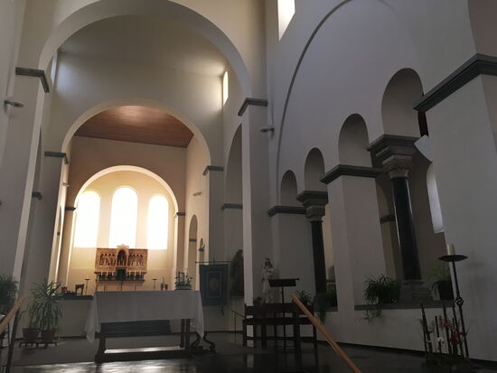 Einmal dahingestellt, ob der - leider unglücklich restaurierte - Bau mit seiner komplexen Raumstruktur tatsächlich noch ein im Kern karolingisches (um 825) oder ein Gotteshaus des 11. Jh. ist, zeichnet ihn ein Stützenwechsel aus, den man nur an ganz wenigen alten Kirchen dieser Region beobachten kann.