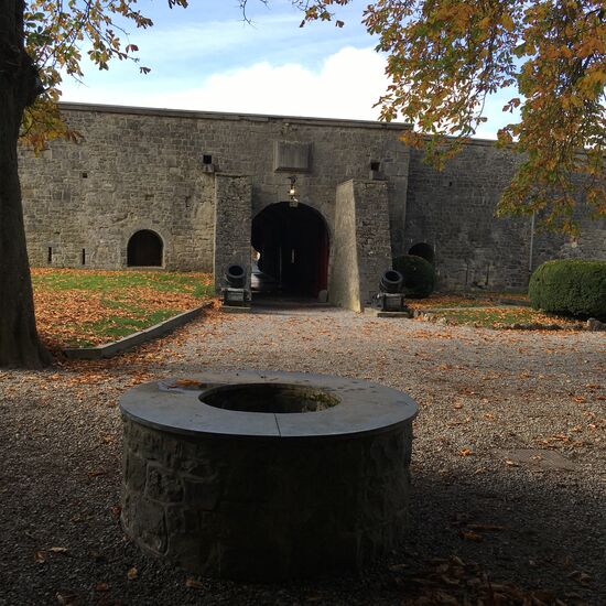 Vor dem Eingang in den Hof der Anlage stehen zwei historische Mörser, der nach Mittelalterart gepflasterte Innenhof zeigt in der Mitte einige wuchtige Schießmaschinen, in die Mauern sind Geschäfte eingearbeitet und auf der gegenüberliegenden Seite befindet sich ein Ausstellungsraum der hier stationierten belgischen Einheit mit ausgewählten historischen Ausrüstungsgegenständen.