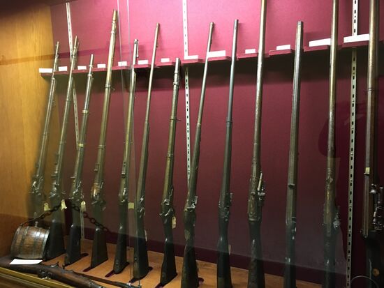 Waffenkammer mit Kürassierrüstungen, Säbeln, Bajonette, Schusswaffen