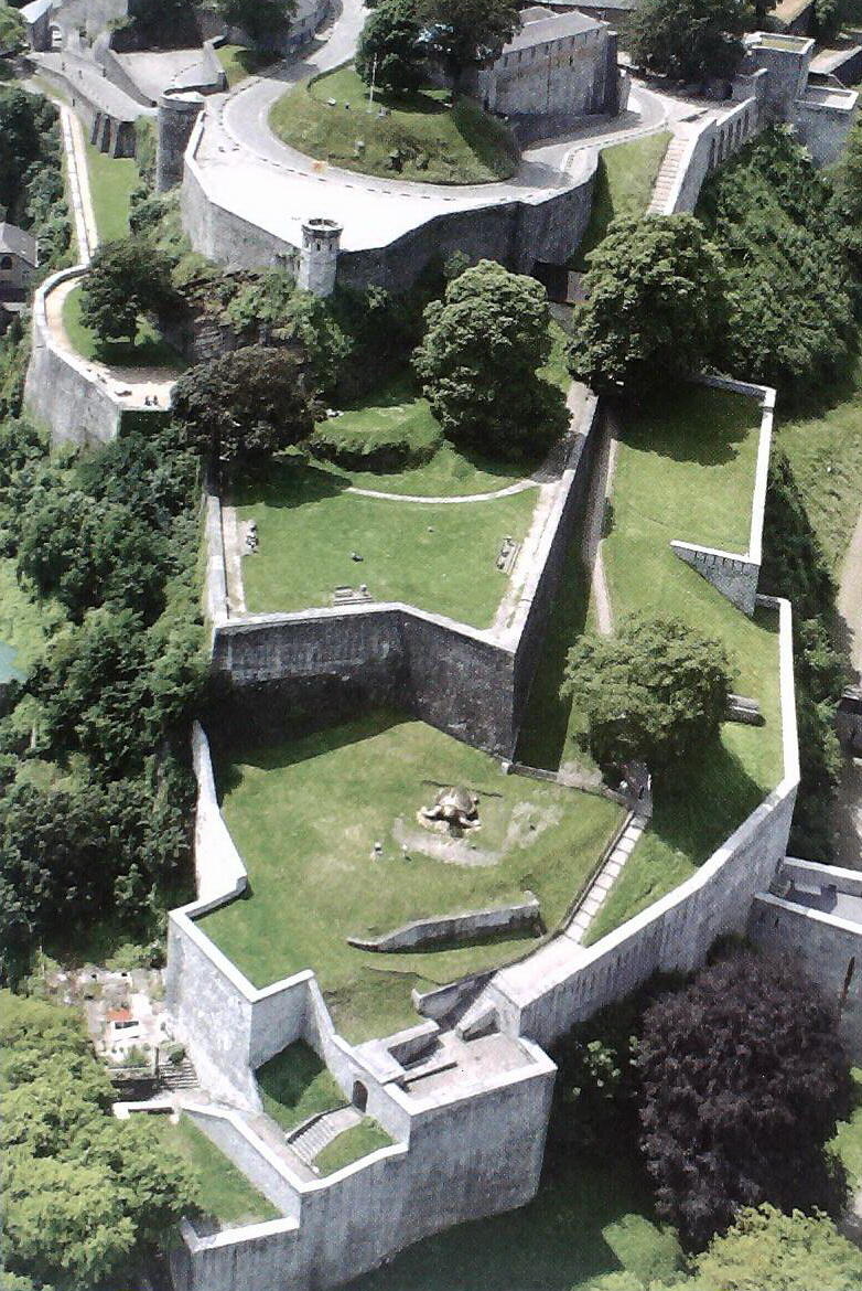 Am Sambreufer angelangt, sieht man dein Portal östlich des Museums, das den Zusammenfluß von Maas und Sambre symbolisiert. Mit einem Blick läßt sich von hier gleichfalls die historische Situation der Stadt und auch die Zitadelle am jenseitigen Ufer erfassen.