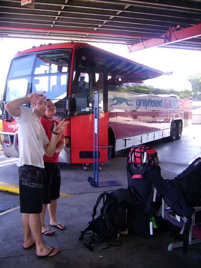 Am nächsten Morgen sind wir drei dann mit Sack und Pack zum Brisbane Transit Center gelatscht, von wo aus der Greyhound Bus nach Rainbow Beach abfuhr... Nach mehreren Minuten Fußmarsch wurde es echt schwer auf dem Rücken!
