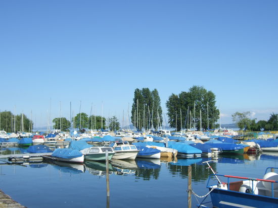 Immerhin meinte es das Wetter auch am Samstag weiterhin gut mit uns, so dass wir unser volles Programm ohne größere Zwischenfälle erledigen konnten. Als erstes ging es mit einer der lustigen Seilbahnen hinauf zu dem schönen Aussichtspunkt, von wo aus man dank klarer Sicht wunderschön die Alpen sehen konnte. Außerdem bot sich hier die Chance zur guten Tat des Tages, denn da oben lag einsam und alleine ein Handy rum, vom Besitzer weit und breit keine Spur. Also, hab ich einfach mal die einzige (komisch!) gespeicherte Nummer angerufen und mit einem Freund telefoniert, der mir direkt mal die Adresse des Besitzers verraten hat, so dass Lisa und ich das gute Stück direkt abliefern konnten. Da fühlt man sich doch direkt mal um Klassen besser! ...und hat für die nächsten sozialen Begegnungen einen gut Nach diesem kleinen Umweg ging es weiter in den Botanischen Garten, um ein bisschen Natur zu tanken (auch wenn es laut Lisa keine bunten Blumen gab...) und den vielen kleinen Kaulquappen zu zuschauen. Nachmittags stand dann zusammen mit Mareike sportliche Betätigung auf dem Programm: Radtour in den Nachbarort mit anschließendem Picknick und Eis essen. Praktischerweise kann man hier nämlich am Hafen umsonst (!) Fahrräder ausleihen - tja, die Schweiz macht's möglich Die Velos waren jedenfalls top! ...auch wenn wir am nächsten Tag alle etwas Muskelkater im Hintern hatten Trotzdem war das eine tolle Tour, die wir bald mal wiederholen wollen.