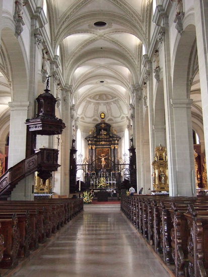 Doch vorerst halte ich mich natürlich an meine Touristenroute und bleibe noch ein bisschen auf der südlichen See- bzw. Flussseite. Spaziert man hier nämlich gemütlich am Ufer der Reuss entlang, gelangt man automatisch zur Jesuitenkirche mit ihren imposanten Zwillingstürmen. Sie wurde in den Jahren 1666-1669 durch Pater Christoph Vogler im Auftrag der Jesuiten errichtet und gilt als der älteste große Barockbau der Schweiz. Besonders beeindruckend ist der großzügige und reich verzierte Innenraum sowie das Gewölbe, das Mitte des 18. Jahrhunderts neu ausgeschmückt wurde.