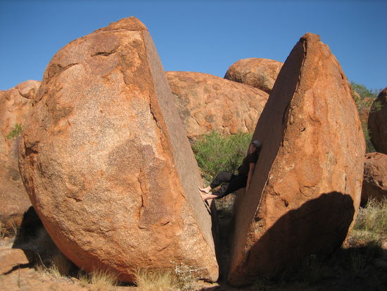 Die Nacht haben wir direkt an den Devils Marbles verbracht. Das sind mehr oder wenig Kugeln aus Granitstein.