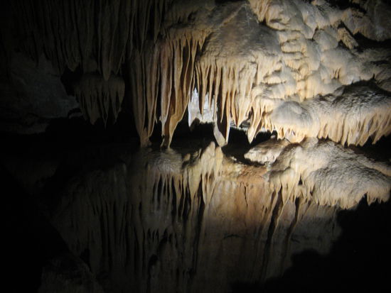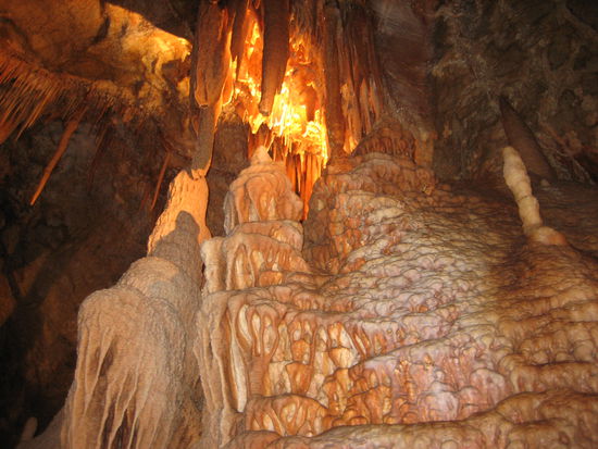 Am Ende dieser Strasse erscheint ploetzlich aus dem Nichts ein kleines gemuetliches Oertchen. Hier wird man sofort vor die Qual der Wahl gestellt. Welcher der ca 9 Hoehlen besichtigen wir nun?? Man muss dazu sagen, dass jede Hoehle ca 22$ Eintritt kosten. Uns wurde die Entscheidung relativ leicht gemacht. Da an dem Tag sehr viel los war, waren die meisten Fuehrungen bei unserer Auskunft schon ausverkauft. Also haben wir uns fuer die Haupthoehle, die Lucas-Cave entschieden. Die Fuehrung dauerte 1,5 Stunden und war sehr interessant. Also wer sich nicht entscheiden kann: die Lucas-Cave lohnt sich. In einer Kammer der Hoehle, genannt "Cathedral", wegen ihrer Hoehe, wird Musik gespielt. Die Akkustik ist dort ist echt super, weshalb auch manchmal Konzerte stattfinden. In vielen der Kammern werden die schoensten "Dinge" mit Lichtern in Szene gesetzt.