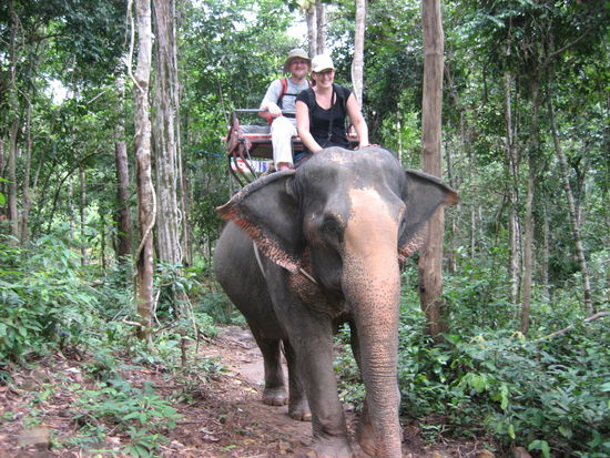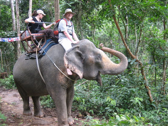 Mit einem Roller (fuer ca 3,3Euro am Tag) haben wir die Insel erkundet und schoene Plaetze entdeckt! Auf dem Ruecken eines Elefanten haben wir den Urwald erkundet und durften sogar selbst reiten, wobei unser Elefant fast die Wege verlassen haette (mit Heiko als Fuehrer auf dem Kopf). Im Elefantencamp gab es zwei Elefantenbabys, die wir 1 Tag nach der Geburt sehen und streicheln durften. Wirklich suess.
