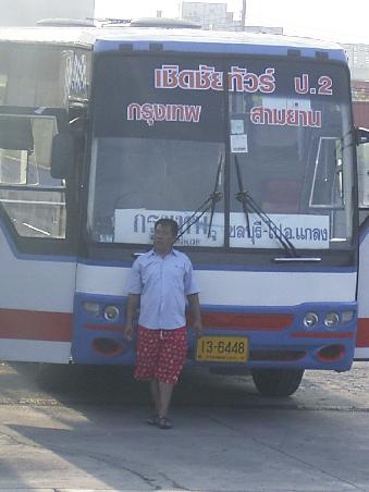 Obwohl wir dem Fahrer gesagt haben, dass wir den Public Bus nach Bangkok nehmen wollten, ließ er uns in Trat vor einer privaten Busgesellschaft heraus. Allerdings war dies im 1. Moment nicht klar ersichtlich. Als der Fahrer anhielt sprangen direkt zwei Frauen in Uniformen auf uns zu und fragten ob wir nach Bangkok wollen. Als wir das bestätigten und- auf den Eingang zeigend- "Public Bus" fragten, riefen die Mädels und der Fahrer "Yes, Yes, Public Bus, pay here!" Und schon wurden wir mehr oder weniger in das Büro gedrängt. Noch im Hineingehen sah ich, daß eine Frau dem Fahrer einen Geldschein zusteckte. OK, das staatliche Busunternehmen hätte das sicherlich nicht gemacht, also sind wir sofort wieder raus. Über die Methoden der hiesigen Unternehmen und den Zustand der Busse und Fahrer hatten wir schon genug gelesen, min. 6 Stunden in einem Minibus nach Bangkok, mit übernächtigtem Fahrer und zu wenigen Sitzen, das konnten wir uns gut verkneifen.