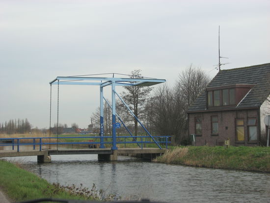 Delft liegt zwischen Rotterdam und den Haag; daher müssen wir bei Maassluis einmal die Fähre nehmen und wählen danach einen landschaftlich herrlichen schmalen 'Pfad' entlang eines winzigen Kanals, der uns u.a. in den kleinen Ort Schipluiden führt. Dort liegt das Niveau des Kanals höher als die Dorpstraat.