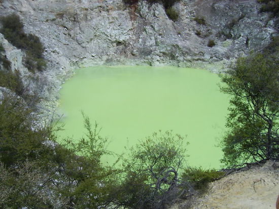 Das Wai-O-Tapu Wounderland ist sehr interessant, ein Gebiet mit vielen Schwefelkratern und Schwefelseen, bei sonnigem Wetter, wundervolle Farben in den kleinen Seen, hier bekommt man auch eine deutsche Broschüre zum Nachlesen - hier sollte man 1,5 Stunden Zeit einplanen.