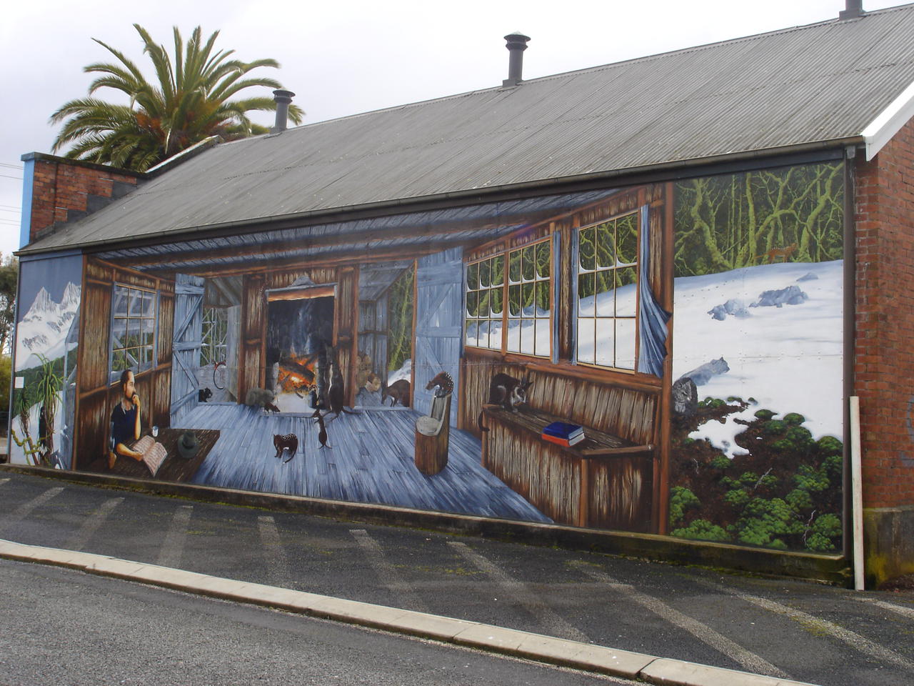Am naechsten Morgen fahre ich ueber den Ort Sheffield, in dem es an den Haueserwaenden Gemaelde gibt wieder in Rtg. Launceston...