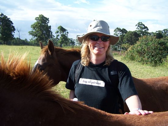 Weiter ging es nach Nakuru, viertgrößte Stadt Kenias. Hier fand zunächst einmal der Banking-Stopp statt. 10 Leute versenkten ihre Plastikkarten in den Schlund eines Barclay´s-Geldautomaten, was ein wenig Zeit in Anspruch nimmt. Versorgt mit Kohle für den Rest der Reise, machten wir uns nun auf den Weg zu unserem Camp für die 1. Nacht. Dieses camp lag auf einer Farm, die einem Engländer gehört. Wunderschön ! Wir bauten unsere Zelte auf, machten uns mit der gartenartigen Umgebung vertraut und wurden kurz darauf zum Rundgang über die Farm abgeholt. Es war wohl nicht für alle so interessant, wie ich es empfunden habe. Der eine oder andere Großstädter kann wohl tatsächlich Farmen nicht wirklich etwas abgewinnen und mit klassischen Farm-Tieren wie Kühen, die exakt genauso aussehen, wie bei uns, nichts anfangen... Ich fand es hochinteressant, denn Landwirtschaft, obwohl ich eigentlich auch nichts damit zu tun habe, liegt mir wohl familienbedingt doch noch im Blut. So konnte ich mich durchaus für die Milchkühe begeistern und dann vor allem für die Pferde ! Auf dieser Farm werden nämlich auch sehr erfolgreich Pferde gezüchtet, die schon durchaus mal für mehrere 10.000 USD verkauft werden !