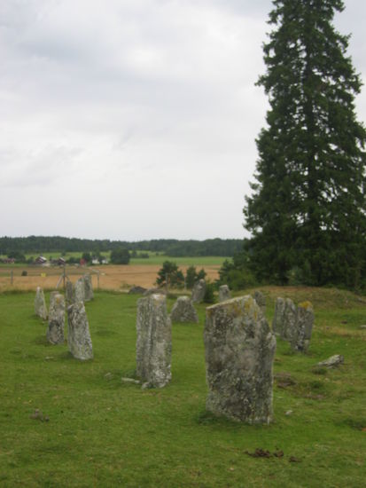 Als dritten Stop auf der Insel Selaön ist das Gräberfeld von Håsta vorgesehen, wir sind zwar skeptisch, aber es lohnt sich, da ein ganzes Schiff aus hochgestellten Steinen zu sehen ist.