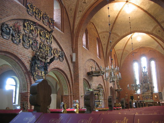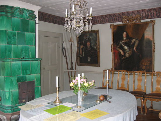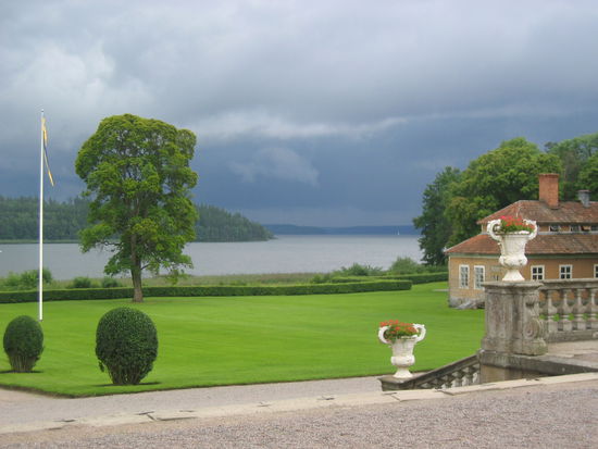 Da es schon fast wieder Mittag ist, machen wir uns mal auf die Straße nach Skokloster, ein Schloß einer einst mächtigen Familie, in deren Besitz es heute noch ist. Es liegt herrlich - wie alle Schlösser - an einem See, hat eigene Ländereien und eine Kirche. Ein Rundgang ums Schloß durch tolle Knüppelbaum-Alleen und ein prüfender Blick ins slotts-cafe, der allerdings negativ ausfällt.