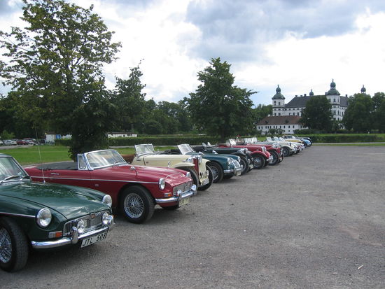 Am nahebeiliegenden Hotel findet ein Oldtimertreffen von ca. 25 MG statt. Wir parken direkt bei ihnen und machen Bully-Picnic. Dabei stellen wir fest, dass die MG-Fahrer auf der Schloßwiese ihr Picnic veranstaltet haben und nun allmählich aufbrechen.