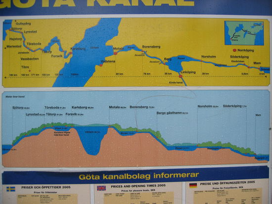 Bei Halstorp haben wir das Glück, einen großen Ausflugdampfer bei der Doppelschleuse zu sehen. Die Links zeigen u.a. auch den interessanten Höhenverlauf des Glötakanals an.