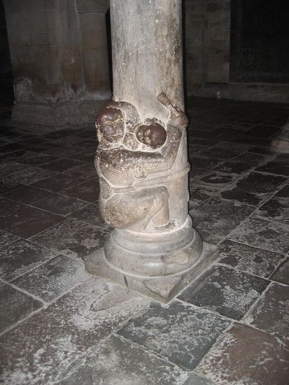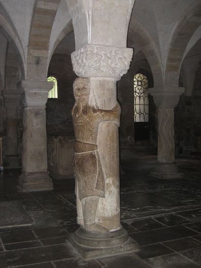 In der sehenswerten Krypta sind zwei Granitsäulen mit Reliefs 'Simpson' und 'Samson und Delila' zu sehen.