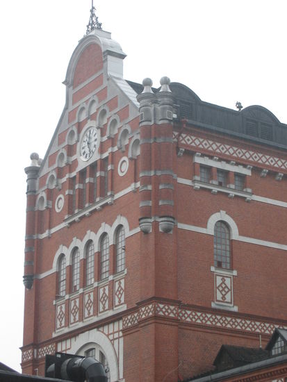 Ebenfalls in Backstein, aber erheblich reicher verziert ist ein (renovierter) Industriebau.