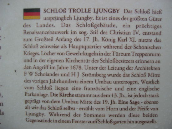 Auf der Fahrt über Landstraßen durch schöne Landschaften, die wir eigentlich auch bei Sonne sehen wollten, geht es weiter, nur mit wenigen Stops - so z.B. am Schloß Trolle Llungby.