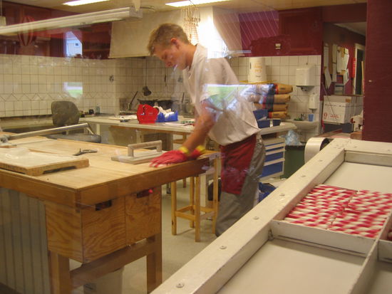aber auch das 'berühmte' Gränna Knäcke, das inzwischen ein weltweites Exportprodukt geworden ist. . Beide 'Manufakturen' kann man besichtigen, d.h. durch eine Glasscheibe den Leuten bei der Handarbeit zuschauen und Proben probieren. Wir machen reichlich Gebrauch davon und schauen uns in dem Ort ausführlich um.