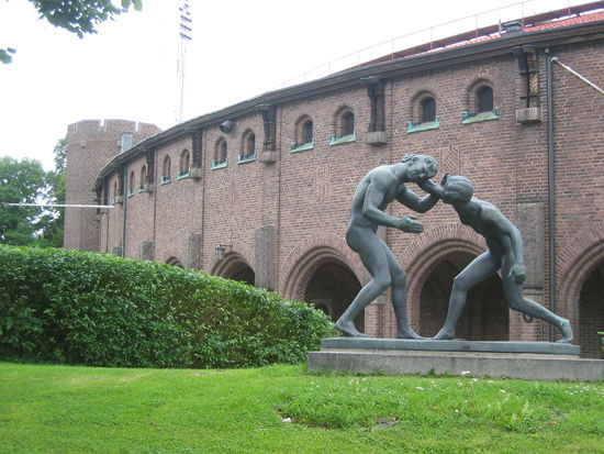 Es regnet Bindfäden, ich falle nach dem Duschen hin und mache mich wieder dreckig! Gegen 12.00 Uhr finden wir dann nach ca. 130 km ohne große Schwierigkeiten den Östermalms City Camping hinter dem Stockholm Stadion von 1912 (olymp. Spiele). Der Sommer-Campingplatz ist eigentlich der Parkplatz an einem großen Sportstadion, für Camper sehr geeignet, da citynah (Bushaltestelle direkt daneben) und eben. Für Zeltreisende scheint er wegen der sehr kleinen Gras-Fläche unter Bäumen weniger geeignet. Die sanitären Anlage sind riesig, aber sauber. Er zählt zu den teuren Pläzen, aber ein Hotel (mit Parkplatz) wäre kaum eine Alternative.
