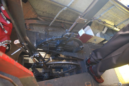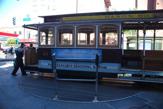 die meissten strassen in san fransisco haben ein verdammt heftiges gefaelle und so muss der fahrer sich mit seinem ganzen koerpergewicht auf die handbremse werfen, um das car vor dem entgleisen zu retten.