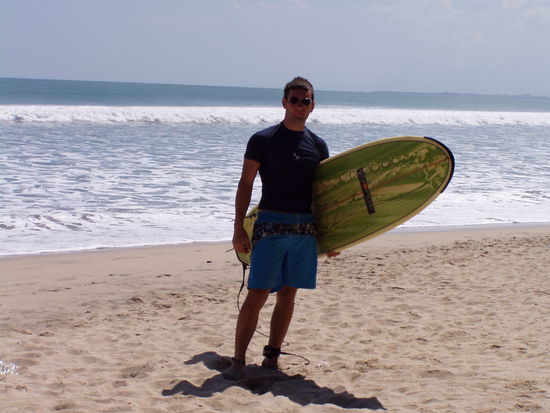 am naechsten tag gings natuerlich gleich an den strand, denn auf bali surft fast jeder und wir wollten es natuerlich auch lernen. der strand von kuta eignet sich zum lernen am besten, da hier die wellen relativ klein sind.