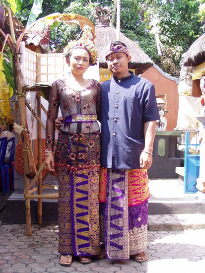 na toll. wir, angezogen wie so ne ballermanntouristenassel gehen auf eine balinesische hochzeit.