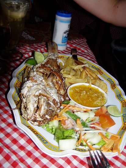 leben auf bali ist noch einiges preiswerter als in thailand. insbesondere das essen. red snapper mit pommes und salat fuer 2 euro