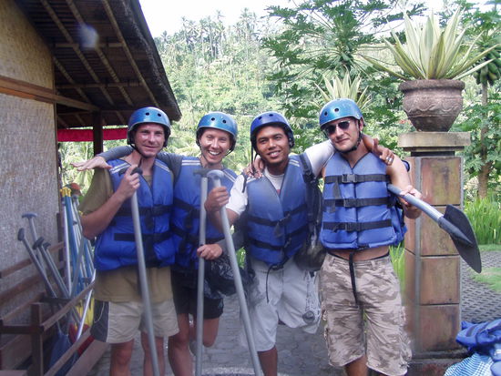 rafting an einem baechlein. leider war der wasserstand ziemlich gering und die fahrt aehnelte mehr einer kinderbelustigung