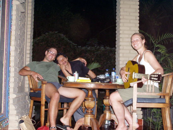 am naechsten tag versuchten wir unser glueck mit einem surflehrer. eine stunde unterricht fuer 20.000 rupiah (ca. 1,60 euro) und tatsaechlich, nach ca. 15 minuten standen wir das erste mal auf dem board - ein geiles gefuehl mit der welle in richtung strand zu schweben