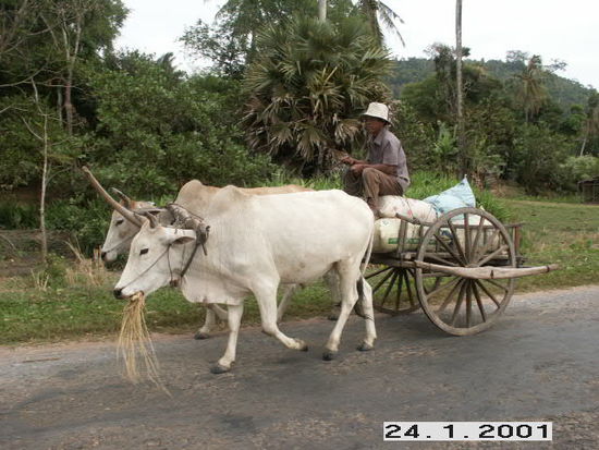 Nachdem wir am naechten Morgen unsere Einkaeufe, die groesseren Sachen hatten wir schon mit einem Auto vorgeschickt, unser Gepaeck und uns selbst auf ein uraltes Moped geschnallt hatten, ging es los in Richtung Phnom Wor.