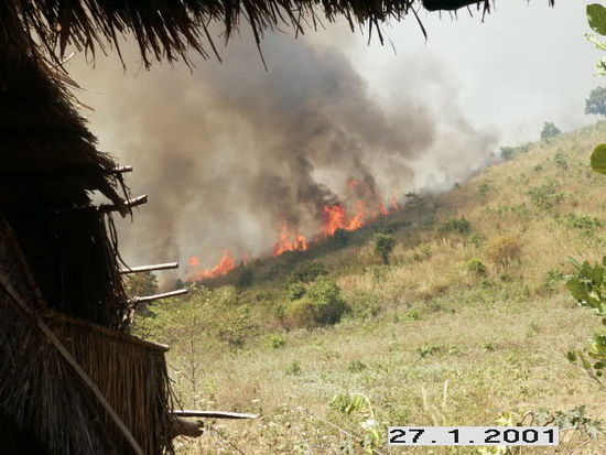 Schon von weitem hatten wir gesehen das es brennt. Ich fuer meinen Teil hab mir nichts weiter dabei gedacht, da es hier zu Lande scheinbar immer irgendwo zu brennen schien.