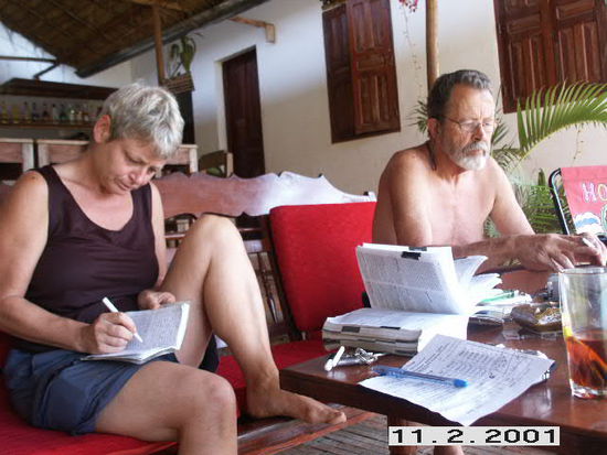 Die beiden hatten sich selber erst kurz vorher in Shianoukville kennen gelernt und sind von dort fuer eine Weile miteinander gereist. Beide wohnten im Hang und fuehlten sich dort genauso wohl wie ich. Und, ich habe sie immer wieder getroffen auf meiner Tour. Mit Carl werde ich vielleicht sogar noch mehr machen in Bezug auf meine Geschaefte. Ausserdem kann ich ihn in Sydney besuchen kommen. Schoen schon mal. Habe ich naemlich einen Anlaufpunkt dort.