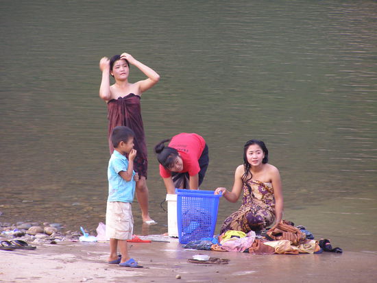 Von Muoang Khua bin ich dann mit einem normalen Touristen Boot (120.000,- Kip) nach Nong Khiaw und nach einer Nacht gleich weiter nach Luang Prabang (110.000,- Kip) um mal wieder ans Internet zu kommen und zu sehen wie sich die Sache mit dem Auto und meiner Anwältin entwickelt hat. Außerdem hat sich Nong Khiaw innerhalb nur eines Jahres extrem verändert. Jede Mnege Touris hier und natürlich haben sich die Laoten hier darauf eingerichtet mit jeder Mnege teuren Gasthäusern und anderem Schnick Schnack. Hier in Luang Prabang werde ich zwei Nächte bleiben (übrigens in einer sehr noblen Herberge mit Namen "Manichan" für 80.000,- Kip die Nacht) und dann mit dem Bus weiter nach Vang Vieng um noch ein wenig klettern zu gehen bevor mein Visa für Laos abgelaufen ist. Wie es dann weiter geht weiß ich noch nicht. Vielleicht verlängere ich mein Visum um noch in den Süden zu gehen oder ich schaue mir den Nordosten von Thailand (Isan) noch mal an da es da auch recht preiswert ist und ich nicht mehr viel Geld habe. Werde das noch irgendwann entscheiden, spätestens am 7ten wenn mein Visum ausgelaufen ist.
