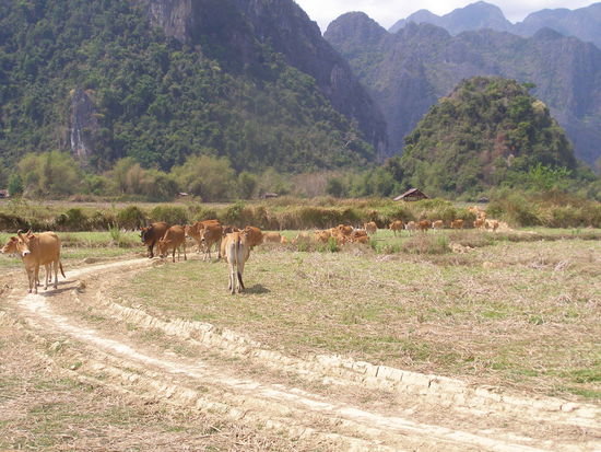 Nachdem ich am Anreisetag mitbekommen hatte was abgeht, jede Menge besoffene Teenies die gerade vom Toubing kamen, mit nichts weiter als einer Badehose oder einem knappen Bikini bekleidet, wogegen ich persönlich nichts habe, nur das es in Laos absolut unangebracht ist so rum zu laufen, bin ich immer in der Umgegend verschwunden und habe die durchaus sehenswerte Landschaft genossen. Nur lange habe ich diese Respektlosigkeiten nicht mit ansehen können und bin nach drei Tagen weiter nach Vientiane. Den ich bin der Meinung wenn ich Gast in einem anderen Land bin habe ich mich auch so zu verhalten, zumal die Laoten für eben jene Touris große Plakate gedruckt haben auf denen, damit es auch der letzte Depp versteht, in Comicform abgebildet ist, was man tun und was man zu lassen hat.