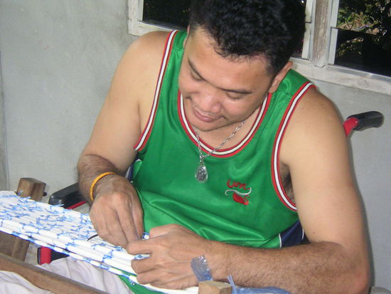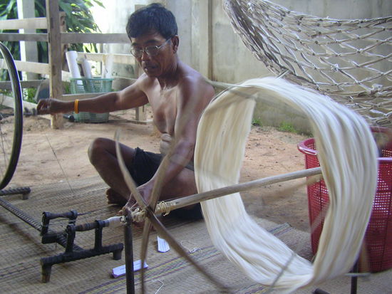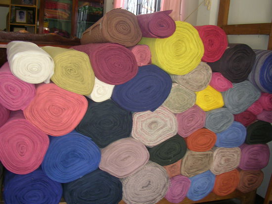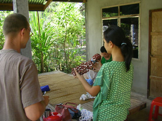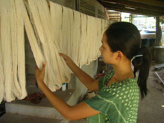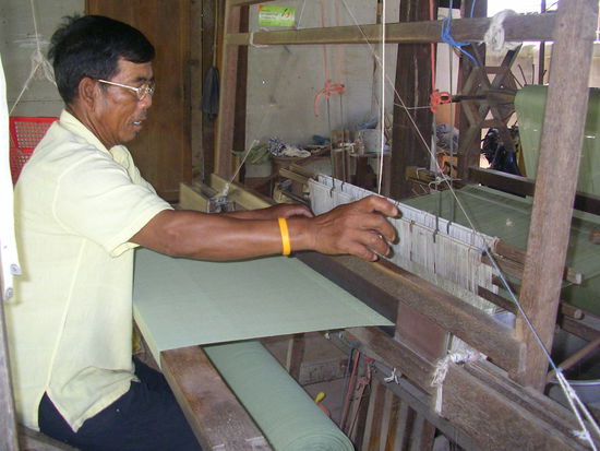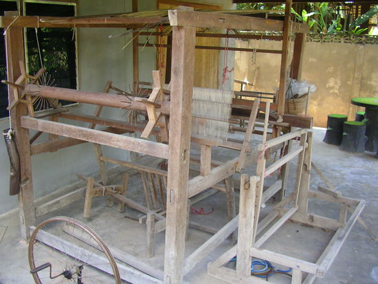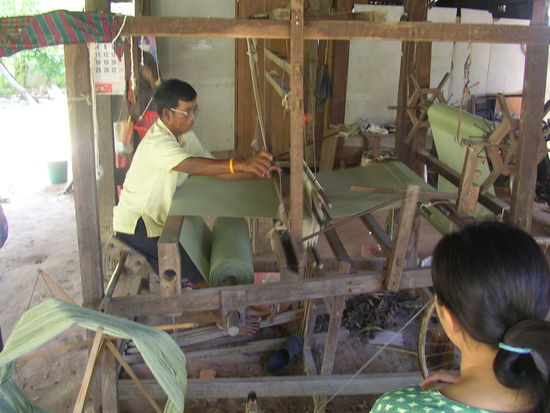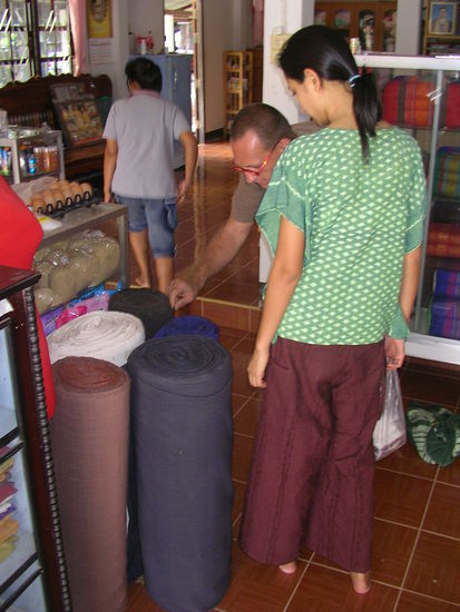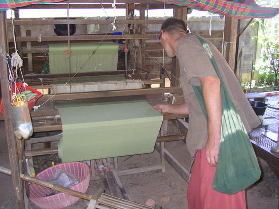 Jedes Haus in diesem Dorf hat mindestens einen Webstuhl. Und auch diesen Job habe ich probiert, nur um zu wissen wie lange man fuer 1 Meter braucht. Ich mag mir nicht vorstellen wie lange man da dran sitzen muss um 100 Meter fertig zu kriegen.