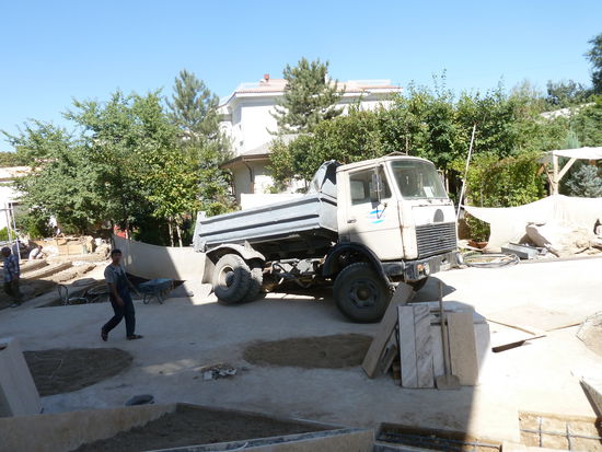 Wir sind hier auch schön international. Deutsche für den Innenausbau, die Technik und den Boden. Italiener für den Marmor und die Mosaiken, Armenier fürs Hirnholzparkettmosaik, Inder für die Einlegearbeiten aus Stein in Marmor, Russen und Polen für den Trockenbau, ect. pp.