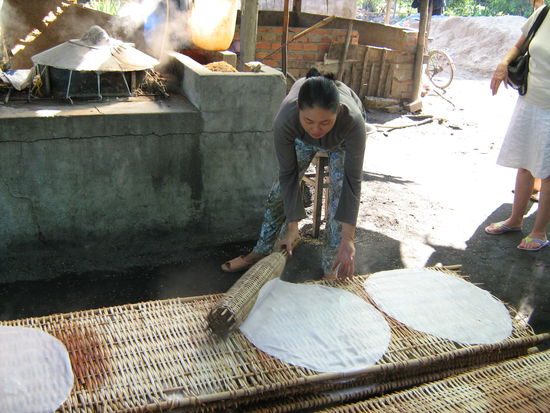 Mein Besuch im Mekong Delta beinhaltete diverse Zwischenstopps. Unteranderen lernte ich kennen, wie man Reispapier herstellt - eine sehr mühselige Arbeit.