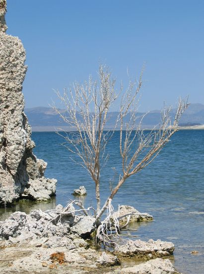 Der Salzgehalt des Sees betraegt heute 10%, weshalb auch nur Minishrimps und Fliegen darin leben. Das man die Tuffs heute anschauen kann, liegt an einer dramatischen Absenkung des Wasserspiegels (u.a. weil Los Angeles bis 1990 Suesswasser abgezogen hat), die zwar verlangsamt wurde, aber heute immer noch anhaelt.