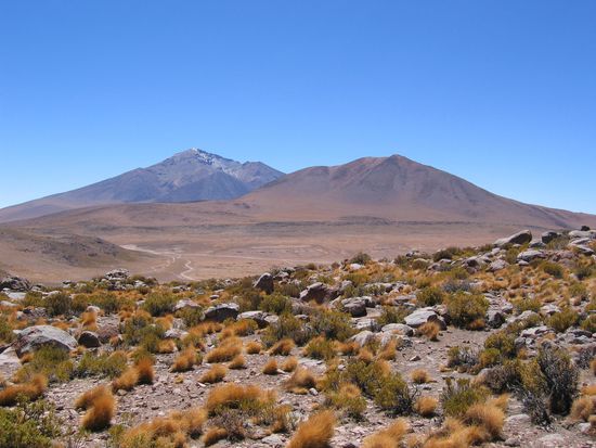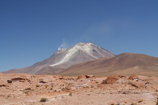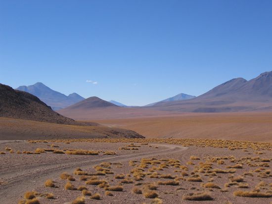 Immer zwischen 4.000 und 5.000 Metern Hoehe unterwegs (gut, dass wir seit Cusco schon auf Hoehen von 3.400 Metern und hoeher verweilen und aklimatisiert sind), wechselt die vulkanische Landschaft staendig und zwischendrin bekommt man auch noch teilweise sehr skurrile Sehenswuerdigkeiten zu sehen: