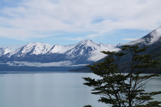 Leider faengt die Kamera das gesamte Panorama nicht ein, denn in Natura sieht das mit den beiden Gletscherseen und den schneebedeckten Bergen links und rechts viel imposanter aus als auf dem Foto!