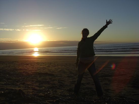 Und dann haben mal wieder ein schoenes Sonnenuntergangsbild, das wir am Strand des Campgrounds mit einem Flaeschchen Bier geniessen durften...