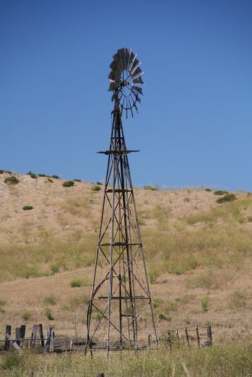 Rechts und links der Strasse findet man immer wieder die fuer Australien typischen Windraeder...