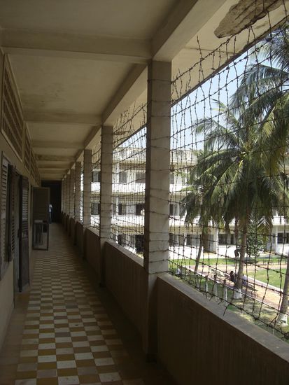 Nach der Befreiung Kambodschas durch die Vietnamesen wurde vieles durch die wuetende Bevoelkerung zerstoert (u.a. auch die Killing Fields), dieses Gefaengnis blieb aber weitestgehend erhalten und ist mittlerweile ein ziemlich stark besuchter Ort mit Fotodokumentationen und einer Filmvorfuehrung.